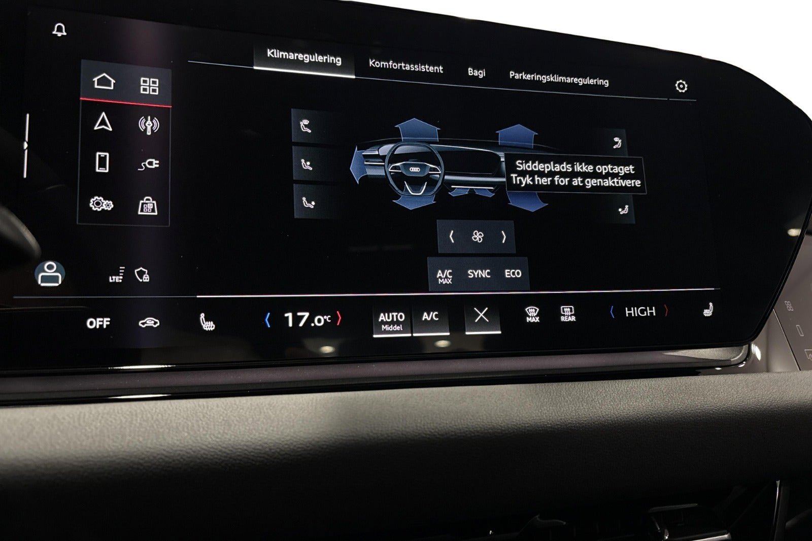 * Plasmablå metallak * Progress+ * Varmepumpe * Matrix LED * 20" alufælge, 5-dobbelteget, præget design, platingrå * Anhængertræk, svingbart * e-tron sportslyd * El-indstillige sportssæder med memoryfunktion for førersædet og sidespejlene * Omgivelseskamera * Adaptiv fartpilot med Adaptiv kørselsassistent plus * Komfortnøgle * Sædevarme foran * 3 zoners klimaanlæg * Elektrisk ladeklap * Digitale lyssignaturer * MMI-passagerdisplay * Sideairbags bagi * Vognbaneafvigelsesadvarsel inkl. nødsituationsassistent * Bakspejl med automatisk afblænding * Sidespejle med elektrisk indstilling, varme og indklapning, automatisk afblænding i begge sider * m.m. |